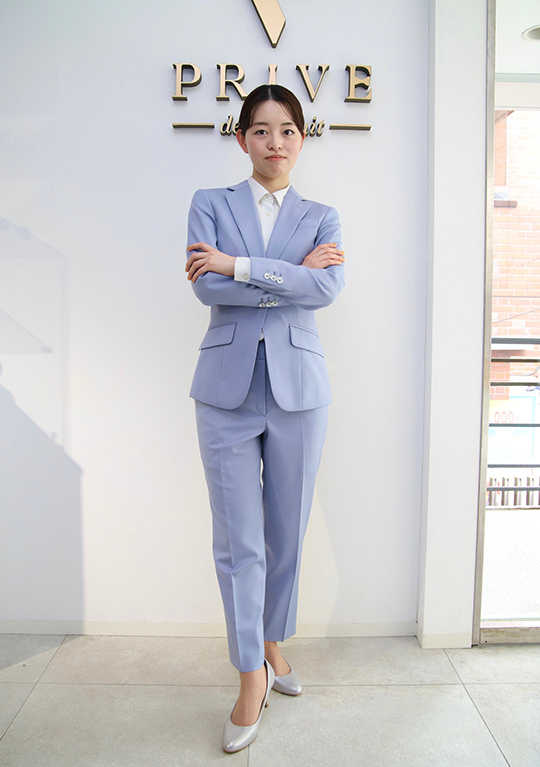 どう見えるかが最重要な女性に、着痩せ・脚長効果・ウエストやヒップ位置を高く見せるなどの1cm単位でこだわったきめ細かな採寸。