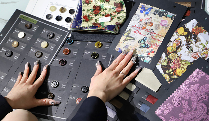 生地・ディティール選びスーツの色・生地・形を決めていただき、裏地・釦などのディティールもこちらで決定致します。全てお客様とスタッフでお話しながら決定していきますので、1からスーツをデザインすることが可能です。